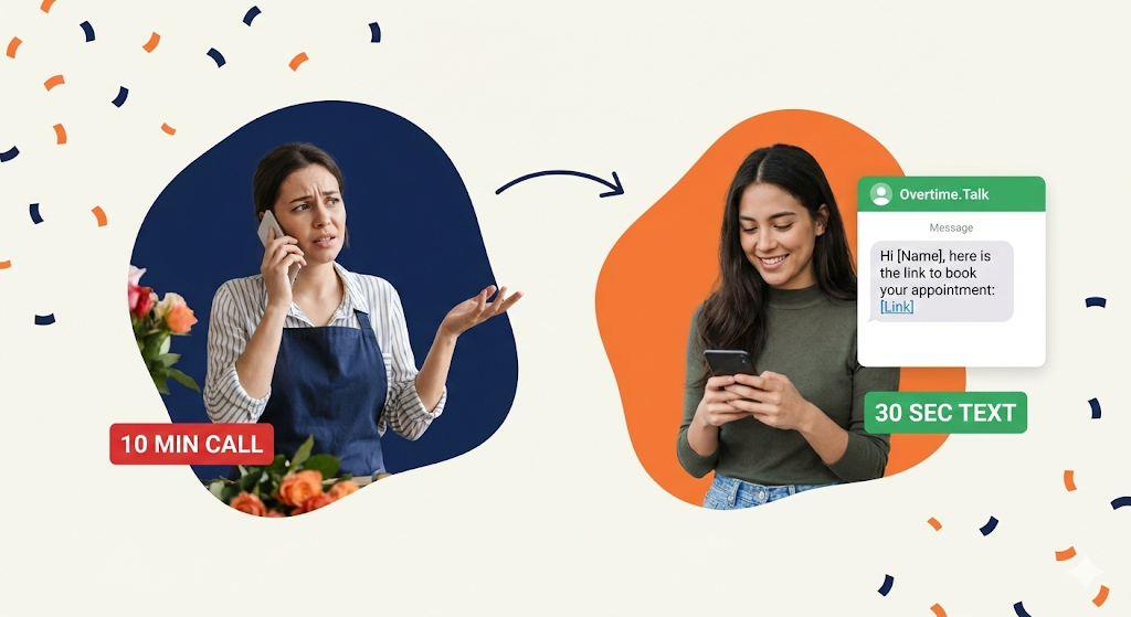 Send booking links and WhatsApp messages instantly while customers are on the phone. Turn 10-minute calls into 45 seconds.